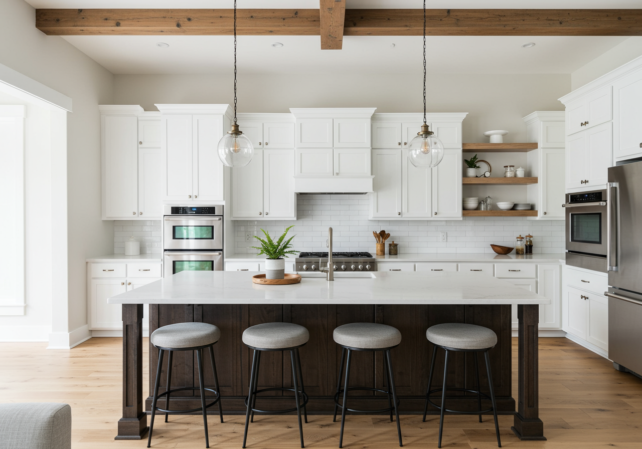 Unless you're standing in brand new construction, you're certain to find numerous elements needing an update, such as the sink and faucet fixtures, lighting, cabinet and drawer hardware, backsplash, and countertops and floors. The great thing about a luxury kitchen update is that it doesn't take much to transform it into an exceptional space. Assuming your cabinets are in decent shape, you'll save considerable time, money, and effort by leaving those alone or simply giving them a fresh coat of paint.
