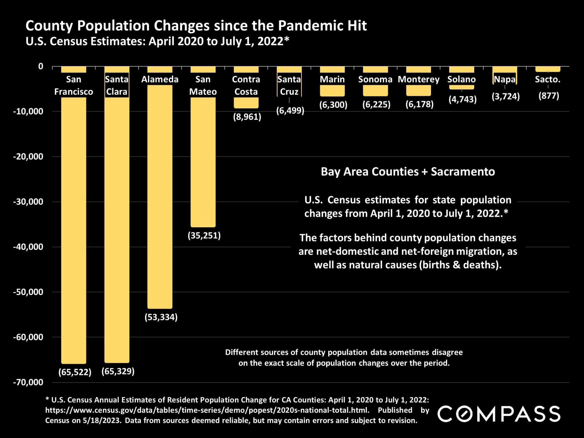 Please check out the link to this presentation on National level data - it covers everything from price trends, to new construction numbers and migration. We pulled this slide to illustrate the net migration out of Silicon Valley since the pandemic. While reports of a “mass exodus” from the area during the pandemic seem overblown, Silicon Valley has lost close to 100,000 residents since the start of 2020.
