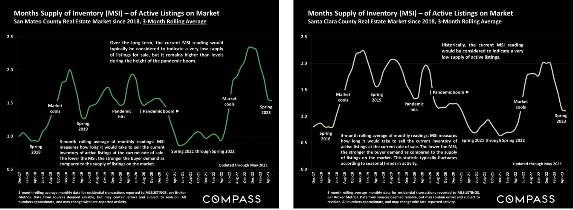 While the pace at which our market moves slowed down compared to this time last year, the feeling of scarcity still requires buyers to act quickly for great houses. We are seeing days on the market decrease which also impacts our month's supply of inventory. In the last month, San Mateo County has dropped to only 1.5 months of inventory, while Santa Clara County is closer to just one month of inventory.