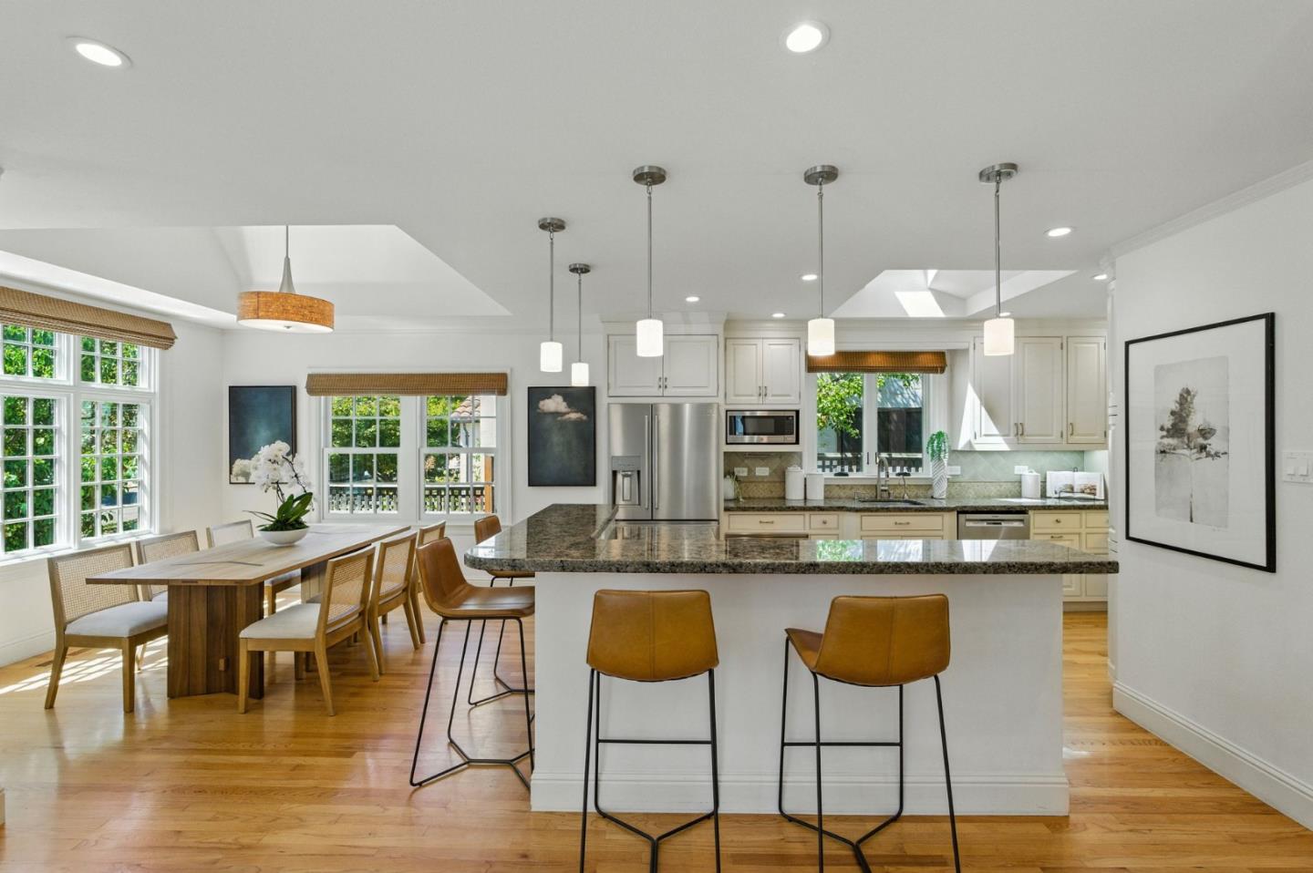 Nestled on a coveted tree-lined street in Redwood City's Mt. Carmel neighborhood, this thoughtfully remodeled home perfectly blends timeless design and modern comfort. Vaulted ceilings flood the spacious living room and dining area with natural light. The chef's kitchen boasts an induction range and custom cabinetry and opens seamlessly to the living and dining areas, creating a dramatic great room ideal for everyday living and entertaining. The main residence offers 4 beds and 2.5 baths, including a primary suite with a recently updated spa-like bathroom. The family room extends to a lush, low-maintenance backyard with multiple seating areas, designed for year-round gatherings. A recently renovated 520 sq.ft. (per plans) 1-bed, 1-bath detached ADU adds exceptional flexibility for multi-generational living, guests, or potential rental income. Adding to the charm, this idyllic block is home to a close-knit community of neighbors who celebrate year-round holidays, block parties, and more. Located just a half block from Stafford Park - home to Music in the Park - and just over a mile from Downtown Redwood City's vibrant shops, dining, and events like "Movies on the Square", this property offers an unbeatable combination of lifestyle, location, and versatility.
