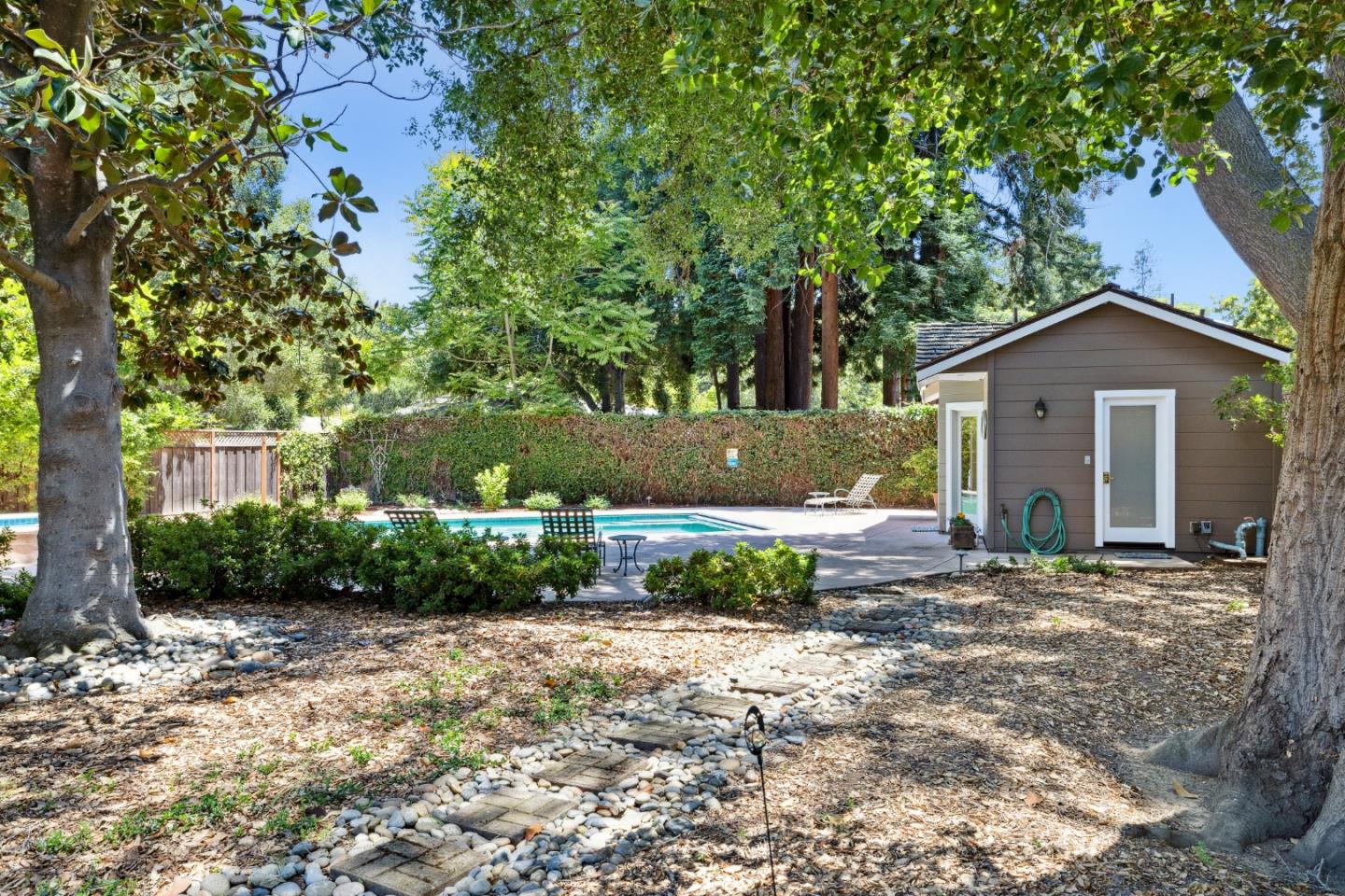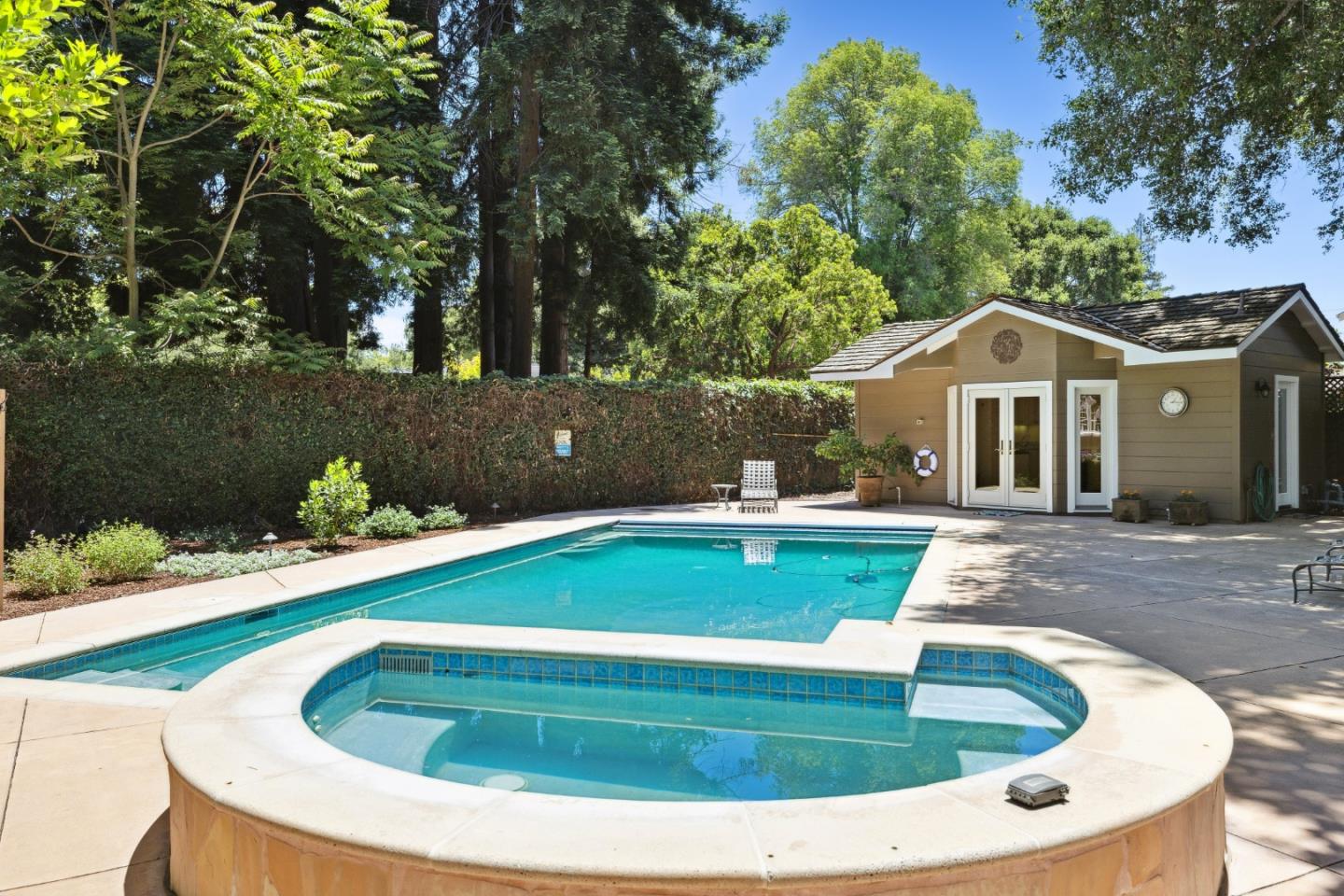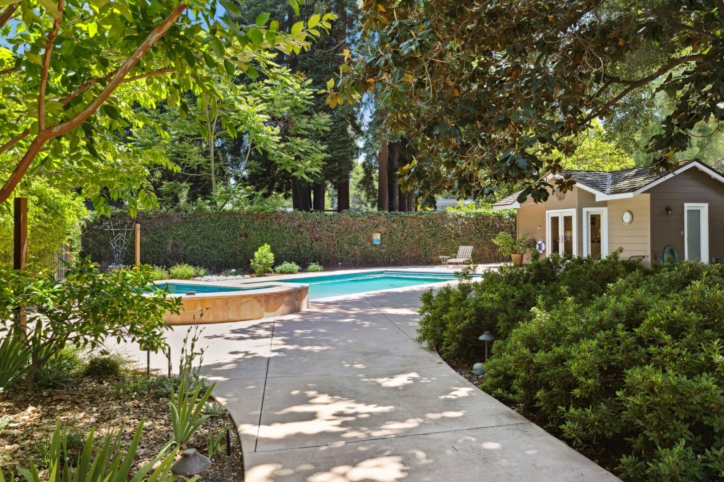 Located on a quiet street in the highly desirable South of Seminary neighborhood between Vintage Oaks and the Willows. This 3,680 +/- sq ft home is located within easy walking distance of two neighborhood parks. The house is surrounded by a beautiful 14,600 sq ft park-like garden with mature Oak and Magnolia trees creating a peaceful and private environment. Hardwood floors throughout. Elegant kitchen with custom cabinetry and a central island. The house features six spacious bedrooms and three full bathrooms. There is a generous primary bedroom with en-suite bathroom, walk-in closet and french doors leading to the backyard. The garage has built-in custom cabinets and storage. There is network/TV wiring throughout the house and a dedicated 40 amp 220v EV electric car charging connection at the front of the house.The backyard is the highlight of the property featuring generous lawn and patio areas with a large pool and hot tub. There is a separate poolhouse (with mini-kitchen and bathroom/shower). The backyard also has a built-in BBQ area and arbor. Excellent Menlo Park schools.