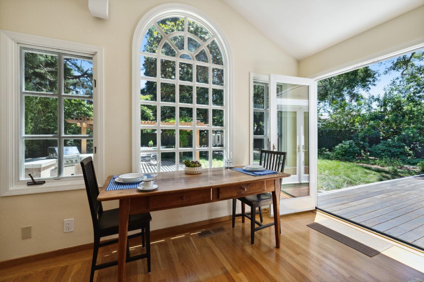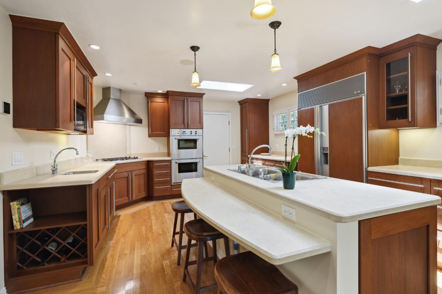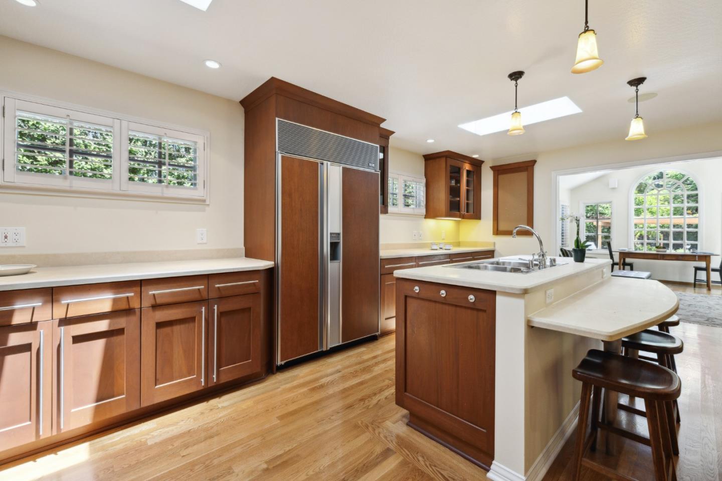 Located on a quiet street in the highly desirable South of Seminary neighborhood between Vintage Oaks and the Willows. This 3,680 +/- sq ft home is located within easy walking distance of two neighborhood parks. The house is surrounded by a beautiful 14,600 sq ft park-like garden with mature Oak and Magnolia trees creating a peaceful and private environment. Hardwood floors throughout. Elegant kitchen with custom cabinetry and a central island. The house features six spacious bedrooms and three full bathrooms. There is a generous primary bedroom with en-suite bathroom, walk-in closet and french doors leading to the backyard. The garage has built-in custom cabinets and storage. There is network/TV wiring throughout the house and a dedicated 40 amp 220v EV electric car charging connection at the front of the house.The backyard is the highlight of the property featuring generous lawn and patio areas with a large pool and hot tub. There is a separate poolhouse (with mini-kitchen and bathroom/shower). The backyard also has a built-in BBQ area and arbor. Excellent Menlo Park schools.
